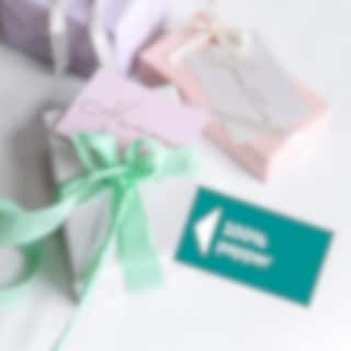 Vi använder återvunnet papper i produkter som hangtags, presentboxar och presentpåsar. Våra presentboxar består av minst 50% återvunnet material.