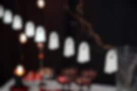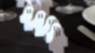 Under middagen blir placeringskorten Ghost ett roligt inslag. Bestående av tolv kort, tillverkade i återvunnet papper och fyllda med roliga frågor, blir dukningen personlig och en omtyckt konversationsstartare. Tillsammans med bordsdekorationen Spökfamilj som mittpunkt på bordet samt girlangenGhost med samma tema, får du extra Halloween-känsla, särskilt i kombination med de svarta och vinröda detaljerna.