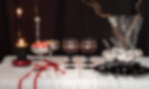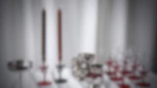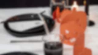 Den svarta servisen Ramen är en självklar grund för bordet. Kombinera den med vinröda, svarta eller vita servetter som viks till spöken, fladdermöss eller annat kusligt. Låt den dekorativa glasljusstaken Rosett, i rött eller svart, bli ett blickfång som matchas med rustik- eller antikljus. Förhöj känslan ytterligare med champagneglasen Rosett, perfekta för att servera allt från bubbel till blodröd bärdrink, och som adderar gotisk glamour till bordet. Gruppera tillsammans med blockljus och smala ljus i samma färgskala för extra dramatik till bordet.