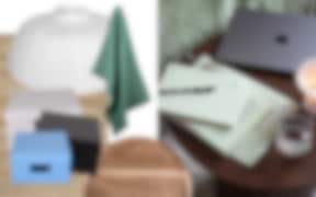 Förvaring får en naturlig uppgradering med nya boxar i papper – smarta, platta paket som enkelt monteras upp och ner efter behov. Boxarna finns i två olika storlekar och tre färger. Papper återkommer även bland kontorsmaterialet under våren, där flera av blocken är lokalt producerade och designade i Göteborg.
