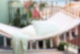 Kuddar, dynor, dukar, mattor och filtar i olika material och färger gör uteplatsen mysig och inbjudande. Häng ljusa tyger från taket, lägg ut mattor lager på lager och snåla inte med kuddar och filtar.