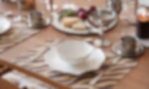 - Mixa material för en varm känsla. Kombinera keramik med glas, trä med metall – kontraster skapar liv. Djurmönstrade bordstabletter eller dekorationer gör dukningen mer personlig och trendig.