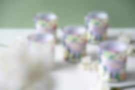 För den som inte får nog av det blommönstrade kommer dukningsdetaljer i glas även att förgylla påskbordet. Champagneglaset Blomma, format som en blomma i rosa och grönt, är ett statement piece på bordet. Glasen Maja, med en kanna i samma mönster, är småblommiga och passar lika bra till påsken som resten av våren och sommaren.