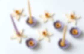 Påskens ljus består av antikljusen Lackat i vårfärger, doftljuset Flowy, samt de blomformade ljusen Flower i gult och lila. Även formljuset Hare, LED-ljusen Utomhus, för just utomhusbruk, samt de äggformade ljusen Speckles och Ägg smyckar påskens kollektion.