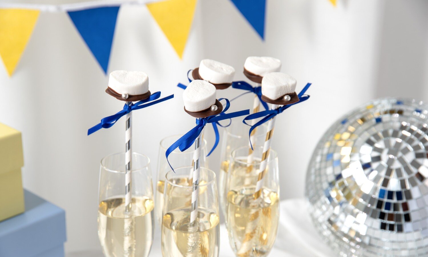 De små ätbara studenthattarna är lika fina att servera i glasen som att lägga fram som snacks på studentbordet. Ett DIY-projekt som passar både stora och små - och som garanterat lockar fram leenden hos gästerna.