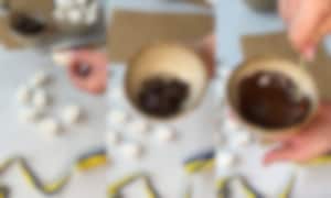 Använd lite smält choklad för att fästa marshmallowhatten på ett sugrör. Låt stelna igen.