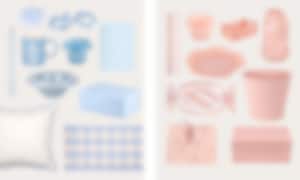 I kollaget ser vi hur ljusblå toner tar form i allt från en stilren kaffekopp med text, till en vågig ljuslykta, en mjuk kudde med kontrasterande kant och en matchande pläd. Här finns även detaljer som ljus, anteckningsblock, presentask och dekorativa håraccessoarer – små produkter som enkelt förnyar din inredning utan stora förändringar.